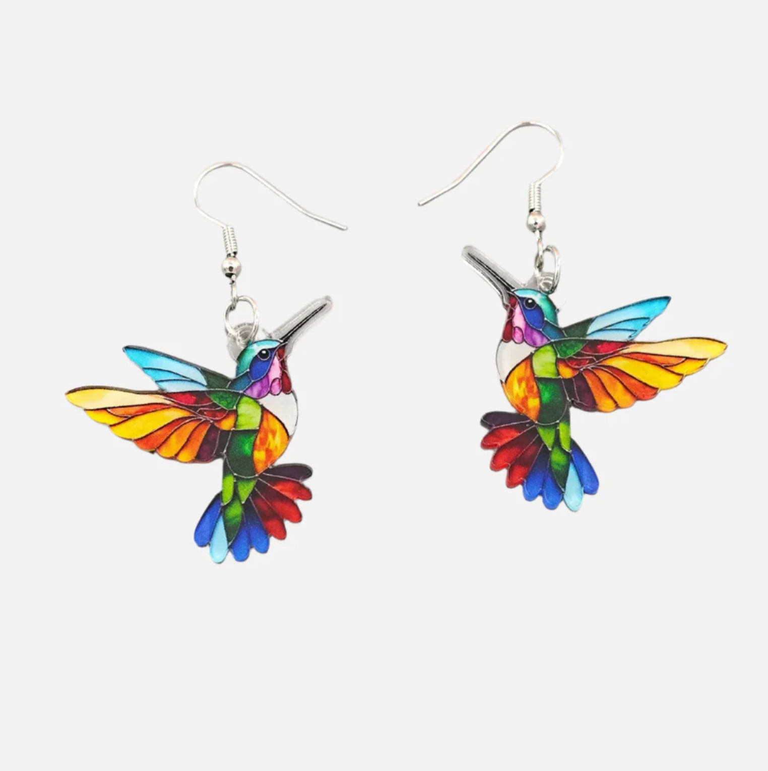 Acrylic Hummingbird Dangle Earrings – Bright 2D Bird Design